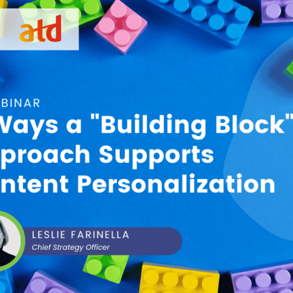 In this webinar with the Association for Talent Development, Leslie Farinella explores why content is the key to any personalization strategy and how taking a component-centric building block approach and implementing the right technology tools allow organizations to effectively personalize content, even on a global scale.